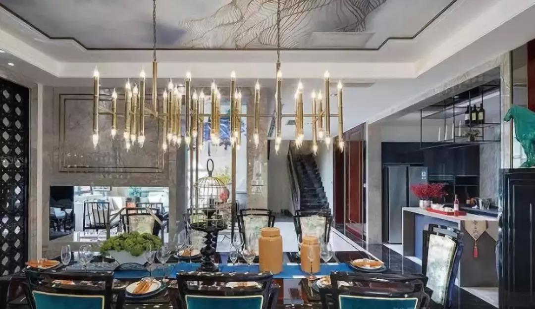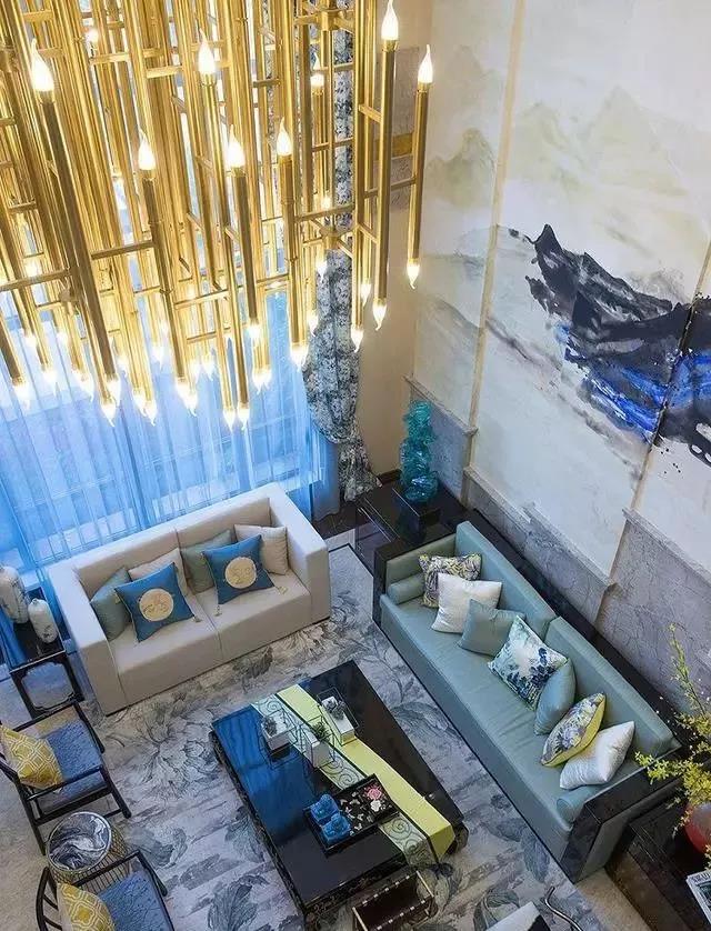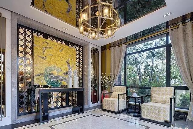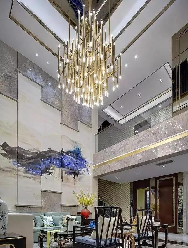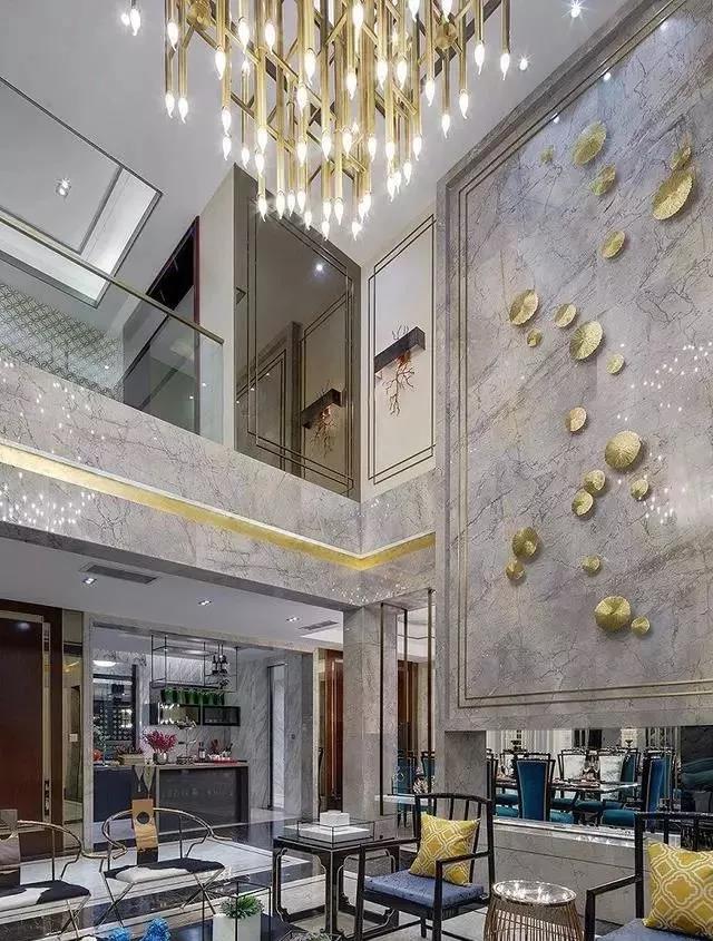 空間結(jié)構(gòu)以刀鑿大形,斧切大塊,大開大合,大面積灰色大理石,煙波浩渺水墨丹青作為空間的主旋律,玄關(guān)正中帝王金色云紋、磅礴的山水畫、水晶太湖石,在細(xì)節(jié)上勾勒出豐滿的輪廓,找到設(shè)計(jì)靈魂的落腳點(diǎn)。