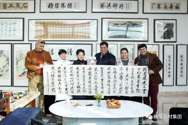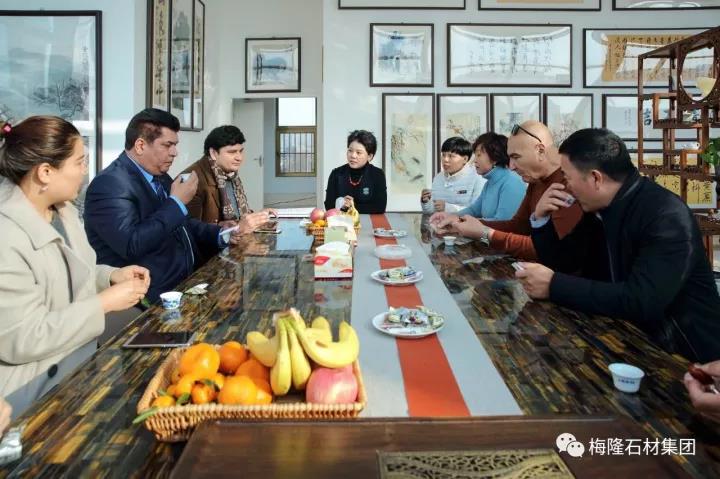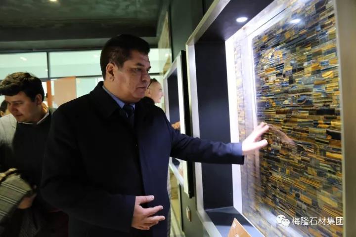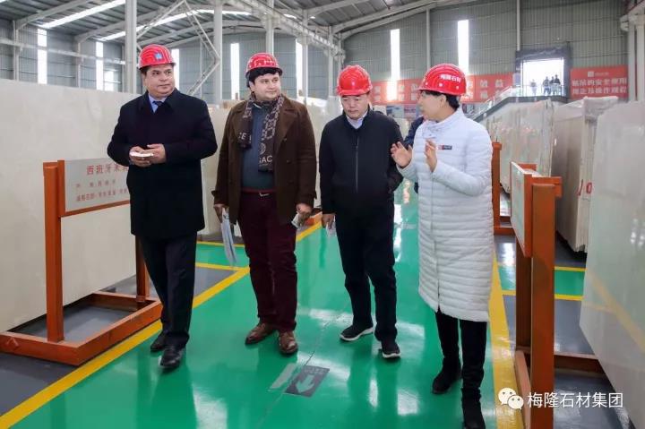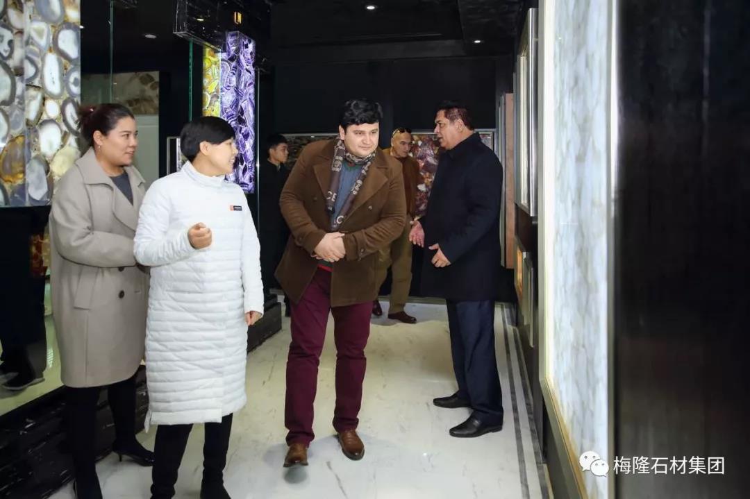 土庫曼斯坦國家企業(yè)家協(xié)會副主席兼秘書長格里巴那里耶夫·米熱特,土庫曼斯坦國家企業(yè)家協(xié)會副主席巴巴耶夫·馬赫特庫里(BabayevMahtumguly)等商務考察團一行參觀梅隆石材、考察指導工作,考察團一行參觀了藝術(shù)與商業(yè)結(jié)合的石材展示區(qū)、生產(chǎn)加工區(qū)、石材交易市場,了解了甘肅石材市場的發(fā)展和進出口情況等。巴巴耶夫·馬赫特庫里看了全封閉式的加工車間和高端石材體驗館,高興地豎起了大拇指。