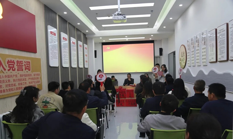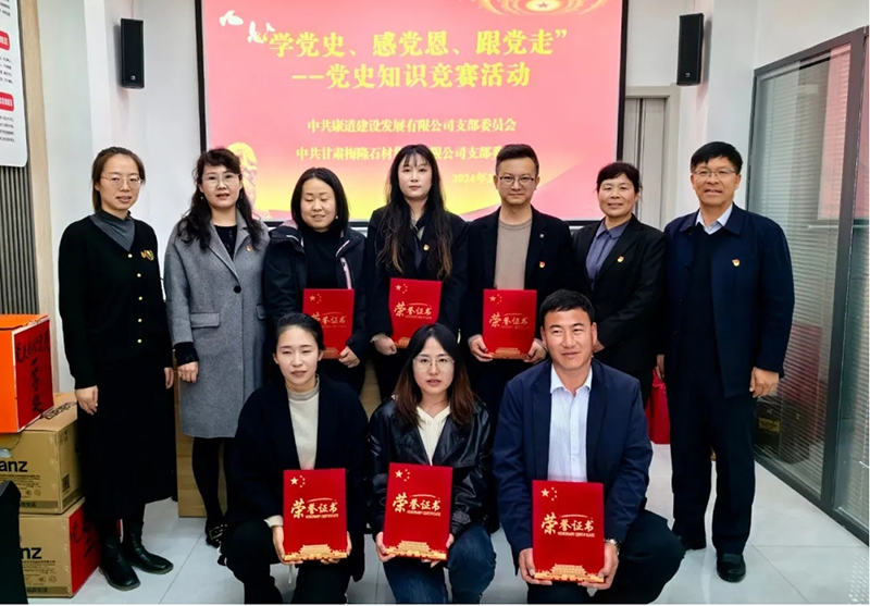 為推進(jìn)黨史學(xué)習(xí)常態(tài)化,以實(shí)際行動貫徹黨的二十大精神,進(jìn)一步增強(qiáng)黨員學(xué)黨史、感黨恩、跟黨走的濃厚氛圍,2024年3月27日下午,甘肅梅隆石材集團(tuán)公司黨支部聯(lián)合康道建設(shè)發(fā)展有限公司黨支部,在西固區(qū)金城中心新興領(lǐng)域區(qū)域性黨群活動服務(wù)中心舉辦“學(xué)黨史 感黨恩 跟黨走”黨史知識競賽活動。 西固區(qū)非公有制經(jīng)濟(jì)組織黨建辦公室主任肖蓉、西固區(qū)非公有制經(jīng)濟(jì)組織黨建專干王麗娟、甘肅梅隆石材集團(tuán)有限公司黨支部書記梅艷艷、康道建設(shè)發(fā)展有限公司黨支部書記陳鋒董事長特邀參加此次活動。 本次競賽圍繞中國共產(chǎn)黨黨史等相關(guān)內(nèi)容,通過搶答題、加賽題2個環(huán)節(jié),全面考察大家對黨史知識的掌握與理解。賽場上,兩個黨支部的19名黨員選手齊聚一堂,同臺比拼,大家沉著冷靜,踴躍答題,答對者信心滿滿、全場喝彩,答錯者毫不氣餒、再接再厲,展現(xiàn)了過硬的理論素養(yǎng)和良好的精神風(fēng)貌。 經(jīng)過搶答和兩輪加賽,最終決出一等獎1名、二等獎2名、三等獎3名。西固區(qū)非公有制經(jīng)濟(jì)組織黨建辦公室主任肖蓉,西固區(qū)非公有制經(jīng)濟(jì)組織黨建專干王麗娟、甘肅梅隆石材集團(tuán)有限公司黨支部書記梅艷艷、康道建設(shè)發(fā)展有限公司黨支部書記陳鋒董事長分別為獲獎選手頒獎。 賽后黨員們紛紛表示,本次競賽既是一次黨史黨建知識競賽,又是一堂生動的黨課,更是對自己理論學(xué)習(xí)成果的檢驗(yàn)。大家將以此次競賽為契機(jī),進(jìn)一步強(qiáng)化理論學(xué)習(xí),切實(shí)把黨的基本理論知識轉(zhuǎn)化為推動工作的強(qiáng)大動力,為企業(yè)高質(zhì)量發(fā)展貢獻(xiàn)自己的力量。 濃筆舒真情,重彩獻(xiàn)衷心!千般畫卷,描不盡我們對黨的無限熱愛。我們深信,在中國共產(chǎn)黨的正確指導(dǎo)下,國家將更加繁榮,人民生活將更加美好。我們相信,在我們所有黨員干部的共同努力下,甘肅梅隆石材集團(tuán)有限公司與康道建設(shè)發(fā)展有限公司的事業(yè)定會再攀高峰!